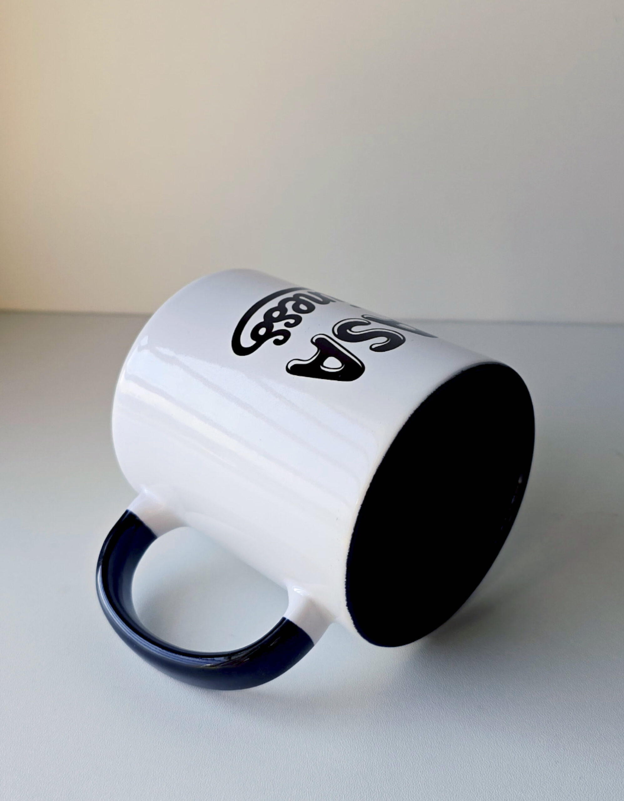 Paired with a white exterior and a contrasting black inner finish, the mug feels bold, elegant, and premium in hand.