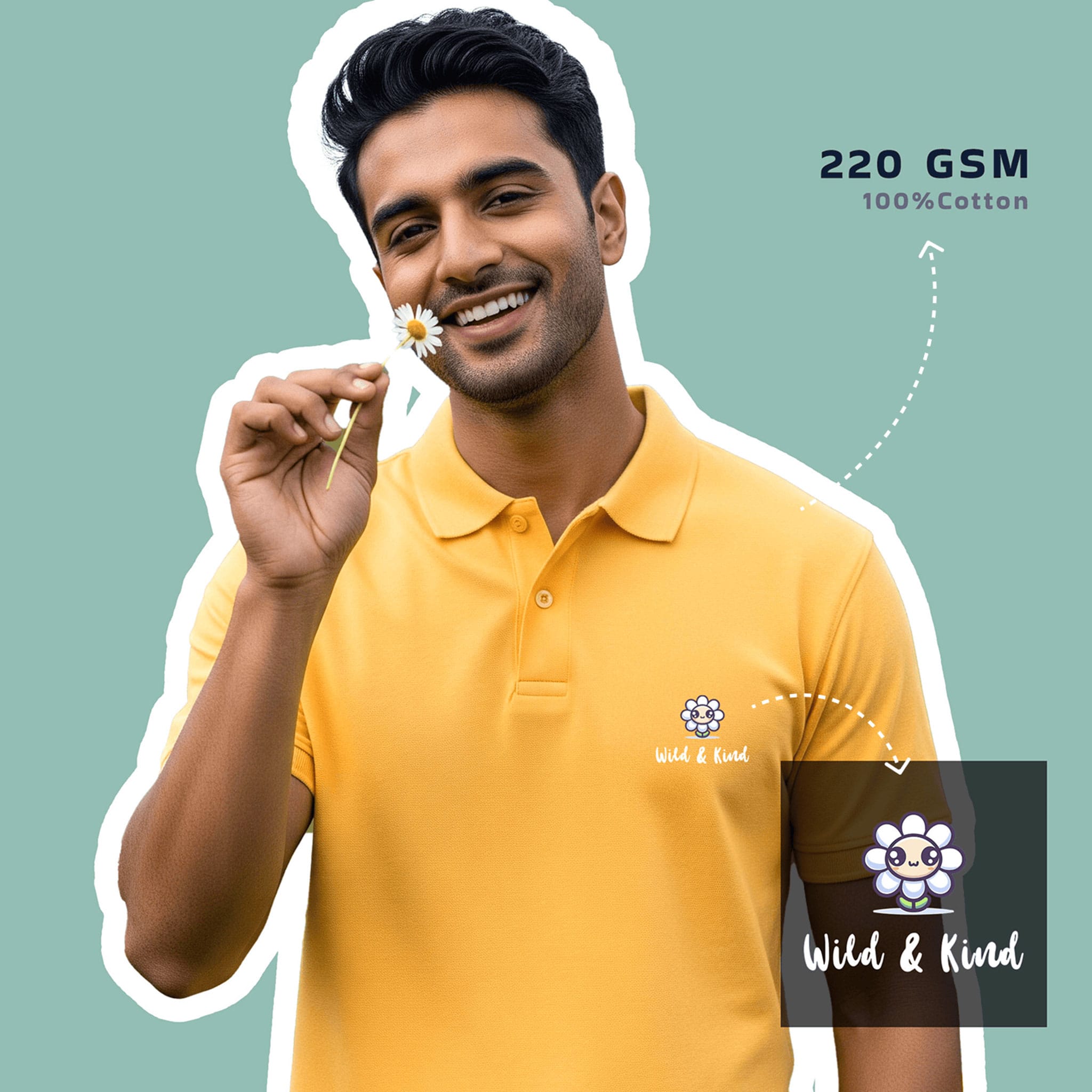 Inspired by wild Himalayan daisies that bloom quietly yet brighten everything, our men’s polo tee is embroidered with a daisy and the words Wild & Kind. Designed in Uttarakhand, this premium polo blends Pahaadi roots with modern style—subtle, soulful, and timeless.