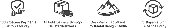 Each Kaafal product is inspired by the mountains, our designs draw from Uttarakhand’s nature, heritage, and state symbols. Every piece tells a story of the hills, made for those who carry a part of the mountains wherever they go.
