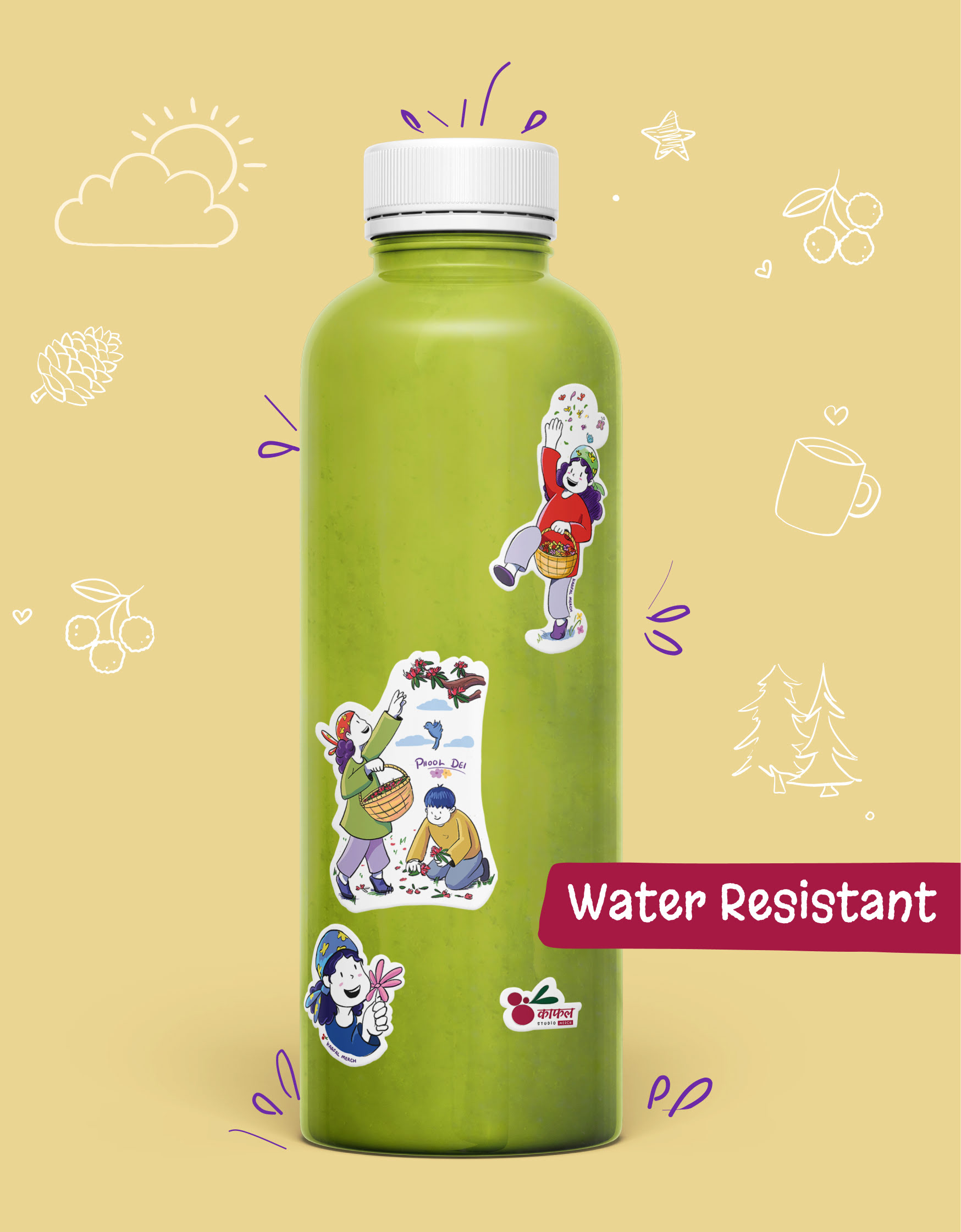 Featuring cute pahadi characters and festive elements, these stickers celebrate flowers, tradition, and everyday happiness. Made with a waterproof, fade-proof, and long-lasting finish, they’re perfect for laptops, journals, bottles, and more.