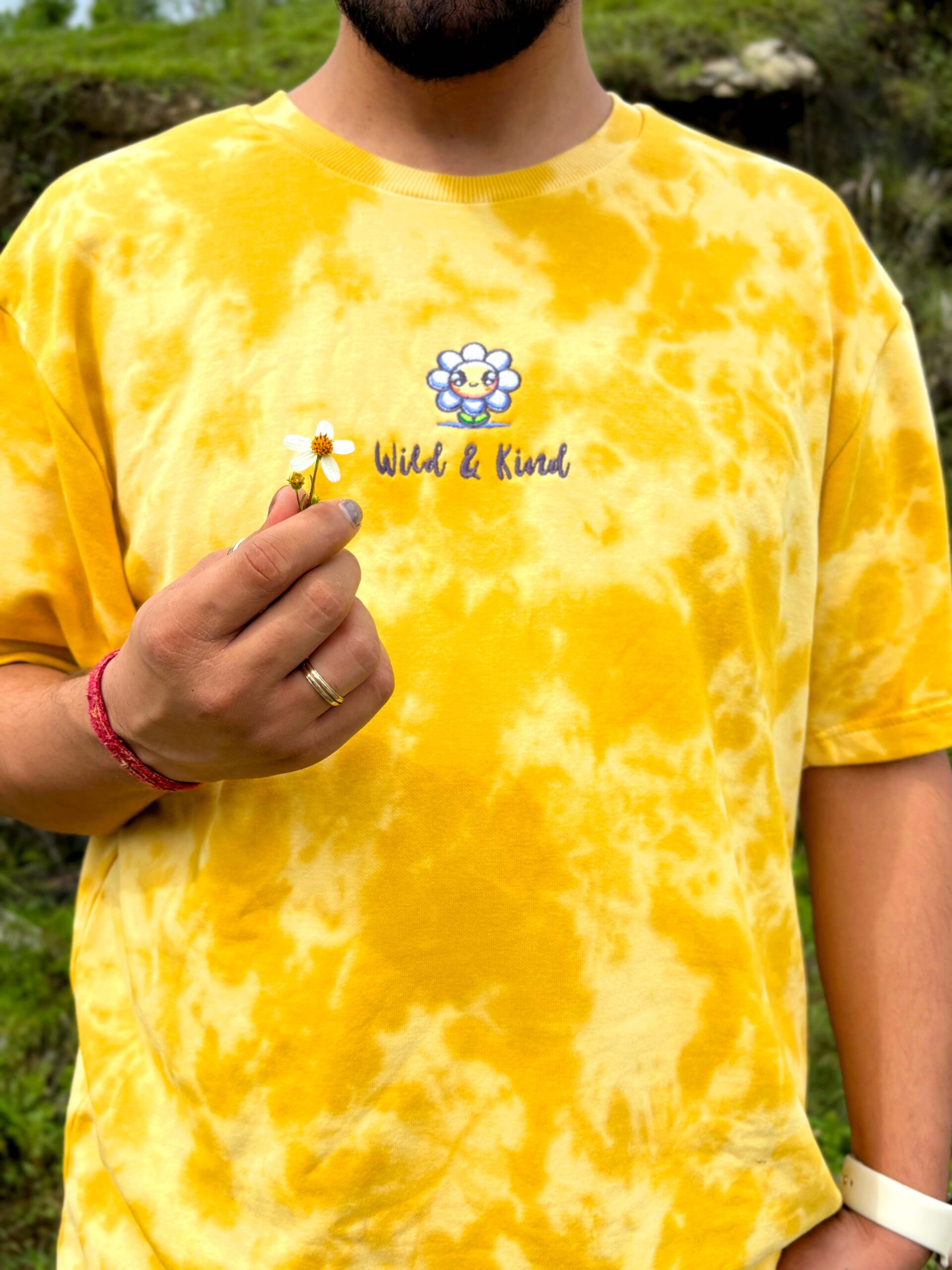 Wild and Kind Embroidery Unisex Tie Dye Oversized T-Shirt